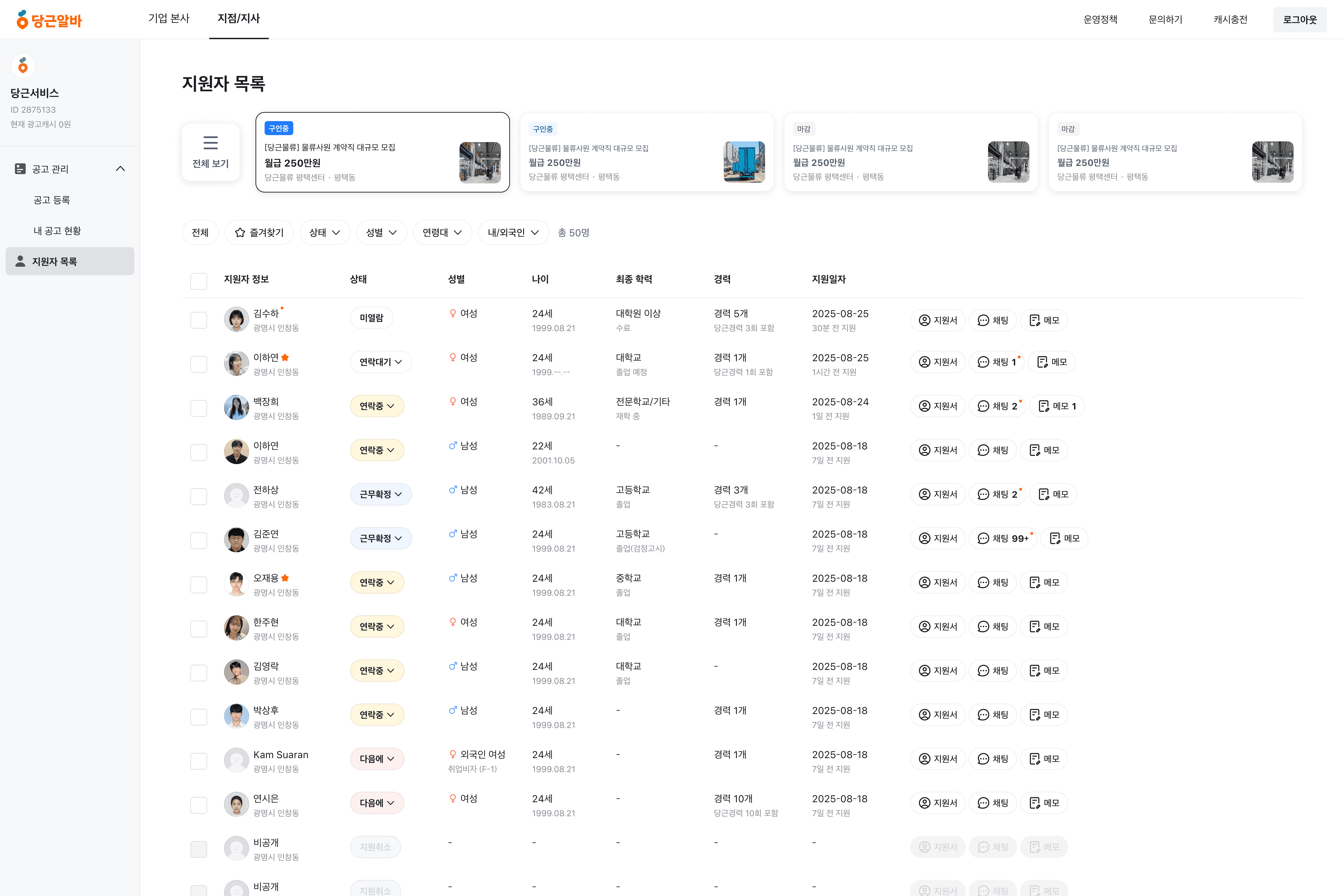 공고 등록부터 지원자 관리까지 편리하게 이용하세요.